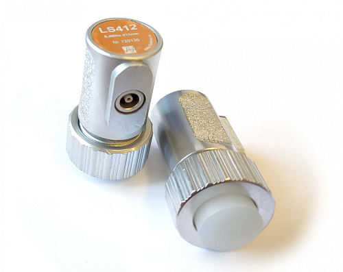 LS412 - ультразвуковой контактный низкочастотный  раздельный преобразователь  для теневого способа контроля. Выпускается со сменным силиконовым протектором.
