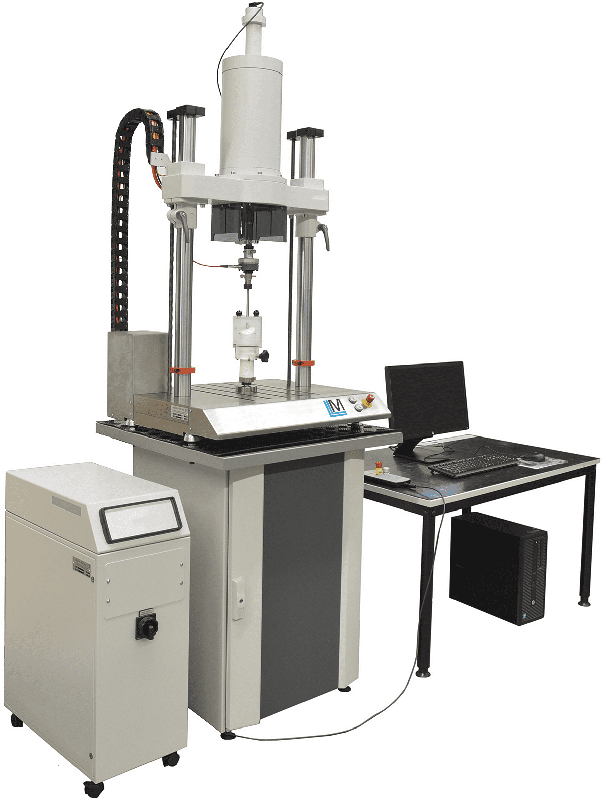 Электродинамическая испытательная машина ММД 5 в двухколонном настольном исполнении для испытания образцов и компонентов в статическом и динамическом режимах нагружения c максимальной нагрузкой до ±±5 кН и частотой перемещения привода до 200 Гц. Испытательная машина оснащена бесшумным не гидравлическим линейным приводом со встроенными подшипниками и длительным жизненным циклом, сконструированным по новейшим технологиям. Отсутствие люфта, связанных со сжимаемостью жидкости обеспечивает высокую точность измерений. Отсутствие гидравлических или пневматических компонентов гарантирует малый шум при эксплуатации, отсутствие загрязнений и минимальные эксплуатационные расходы. Машина работает на базе новейшего управляющего контроллера PCS-8000 с высокой частотой опроса данных до 14,4 кГц.